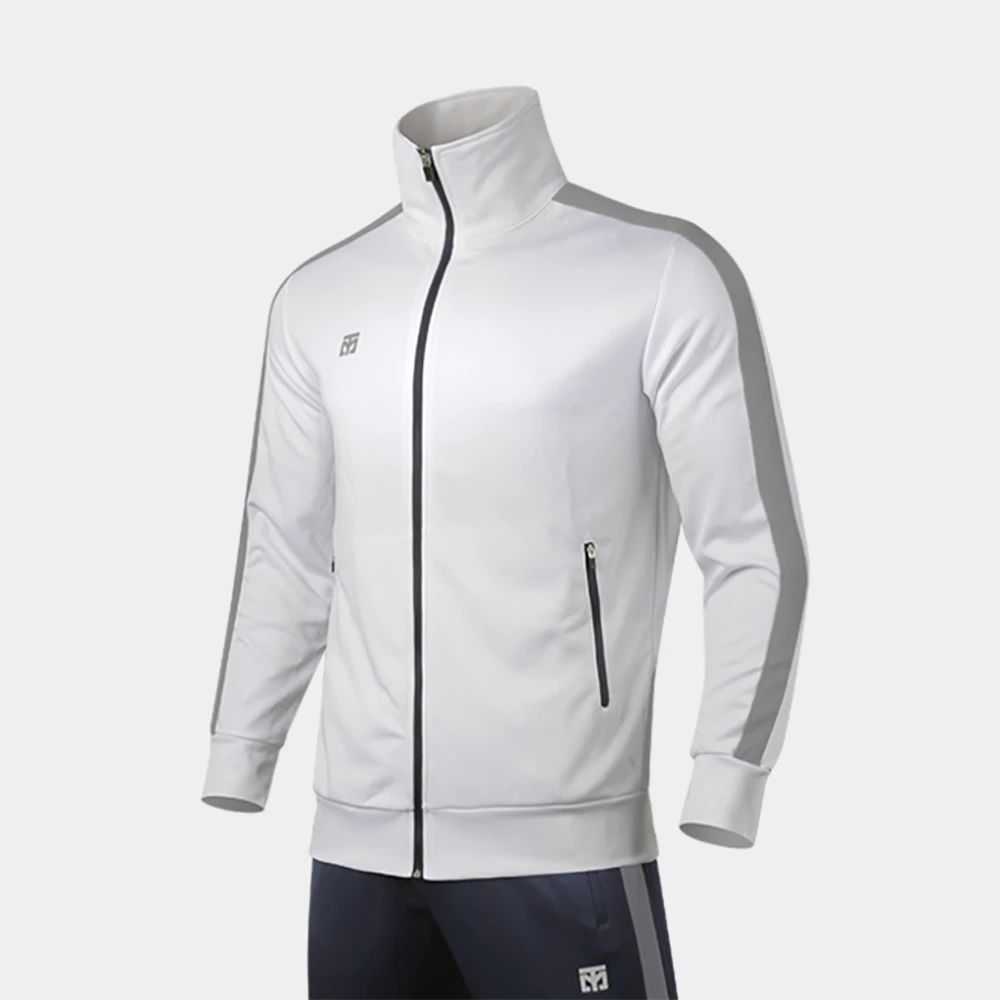 – Ivory white with grey stripe top.Β Navy with grey stripe pants.